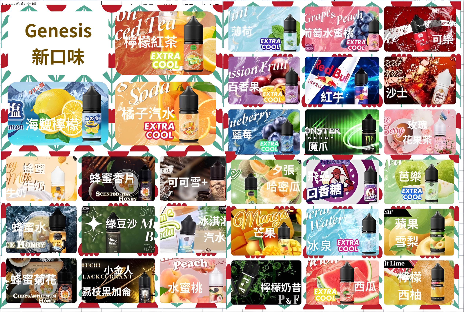 GENESIS 創世紀煙油以精準調香與層次分明的風味表現著稱,將水果、甜品與飲品靈魂巧妙融合,打造既熟悉又充滿驚喜的口感體驗。