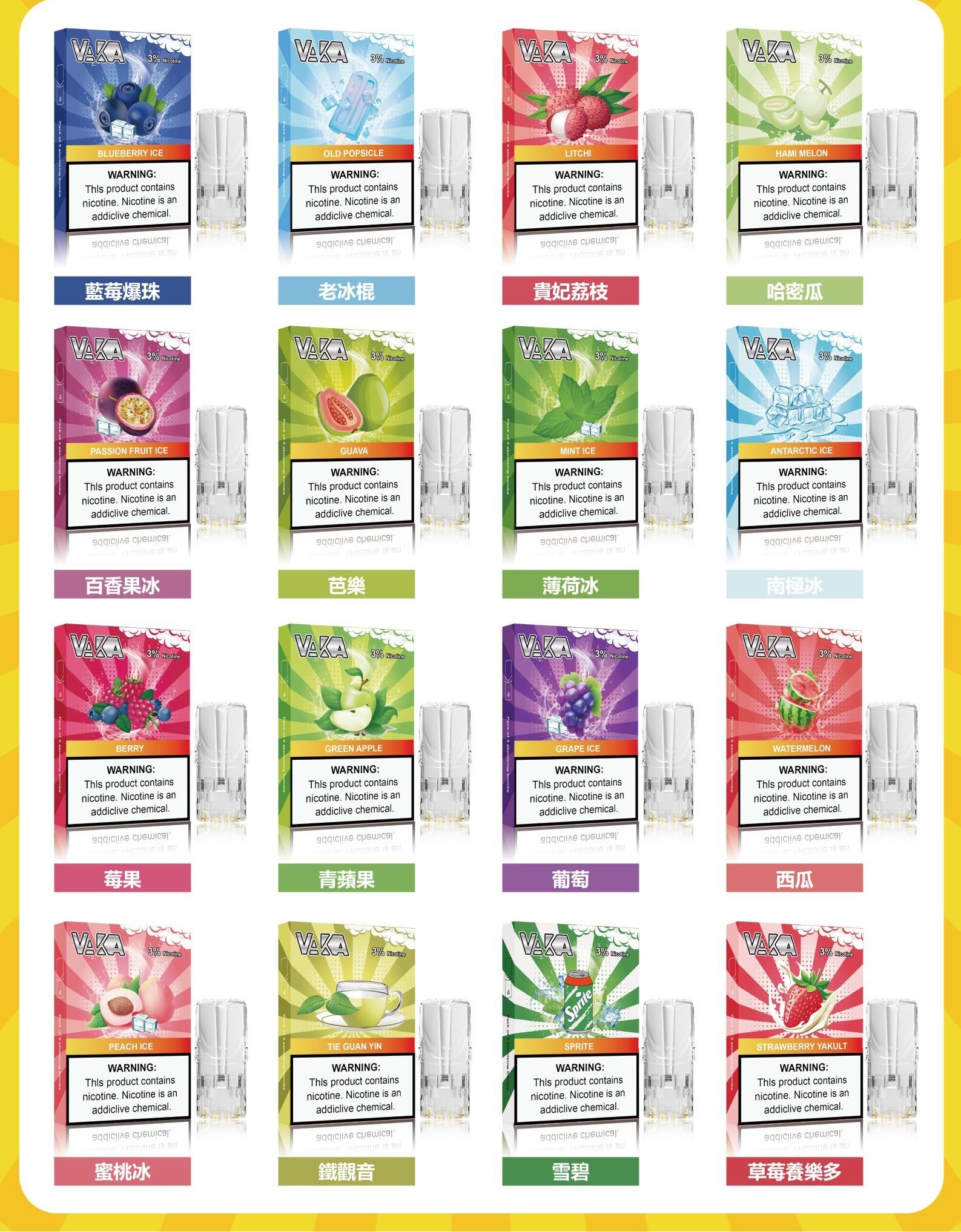一般為 VAKA 煙彈 ×1(口味自選);若選購三顆裝則以實際組合為準。